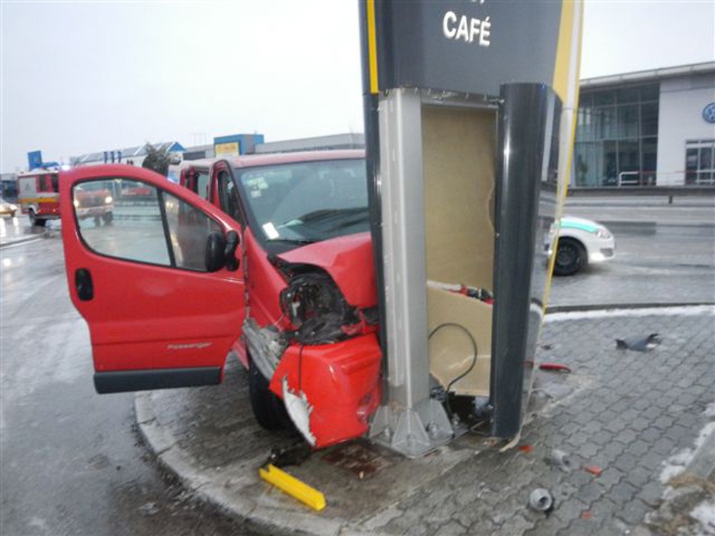 Ako informovala Zuzana Farkasova z Prezídia Hasičského a záchranného zboru, minibus s ôsmimi cestujúcimi dostal na zľadovatenej ceste šmyk a nabúral do reklamného pútača.