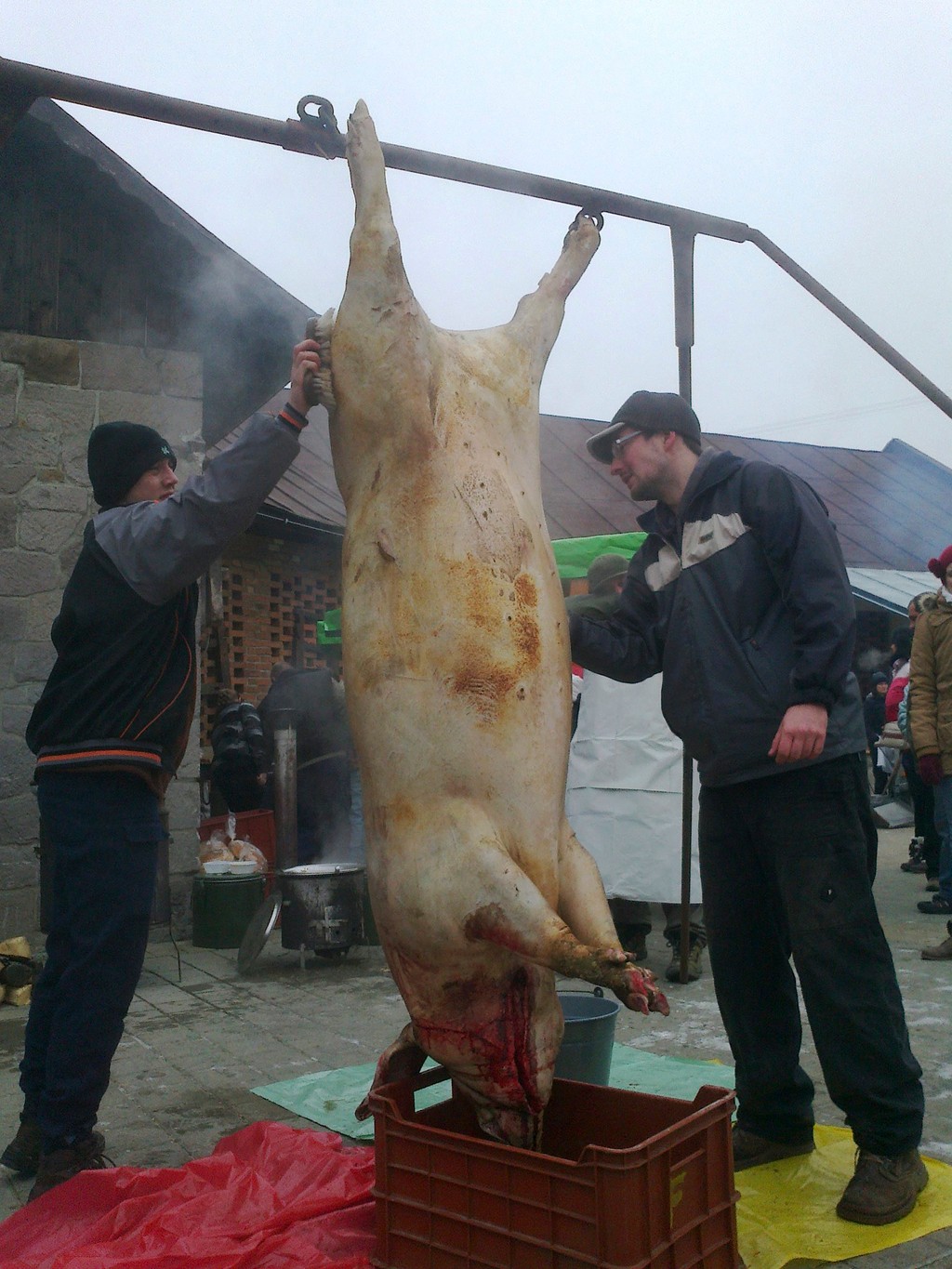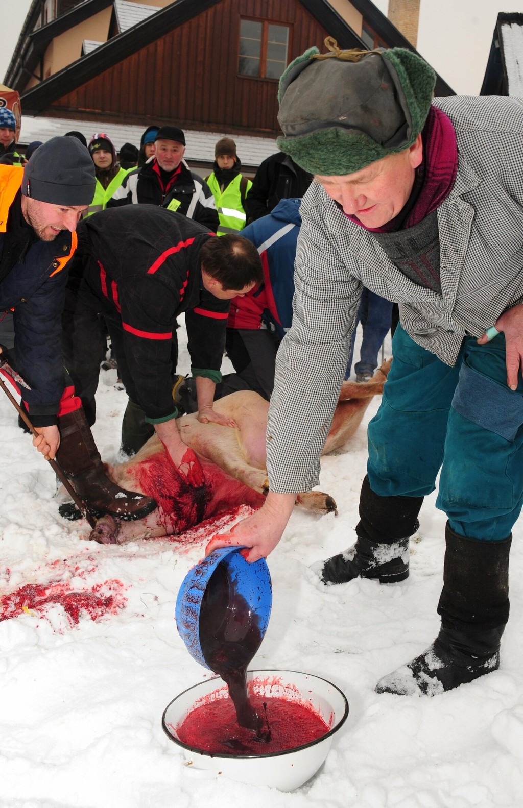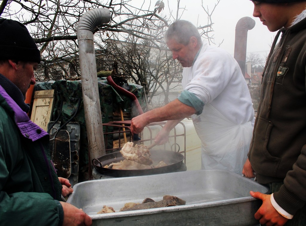 Pripravený kotol s horúcou vodou, nabrúsené nože a flinta boli synonymom toho, že sa chystá dedinská zabíjačka. Pred dôležitým aktom sa chlapi potužili jedným „frťanom" a išlo sa na to. Najprv streľba a neskôr pichnutie do krku. Ženy chystali krv, aby mohli spraviť prvé jedlo - pražená krv na cibuľke.