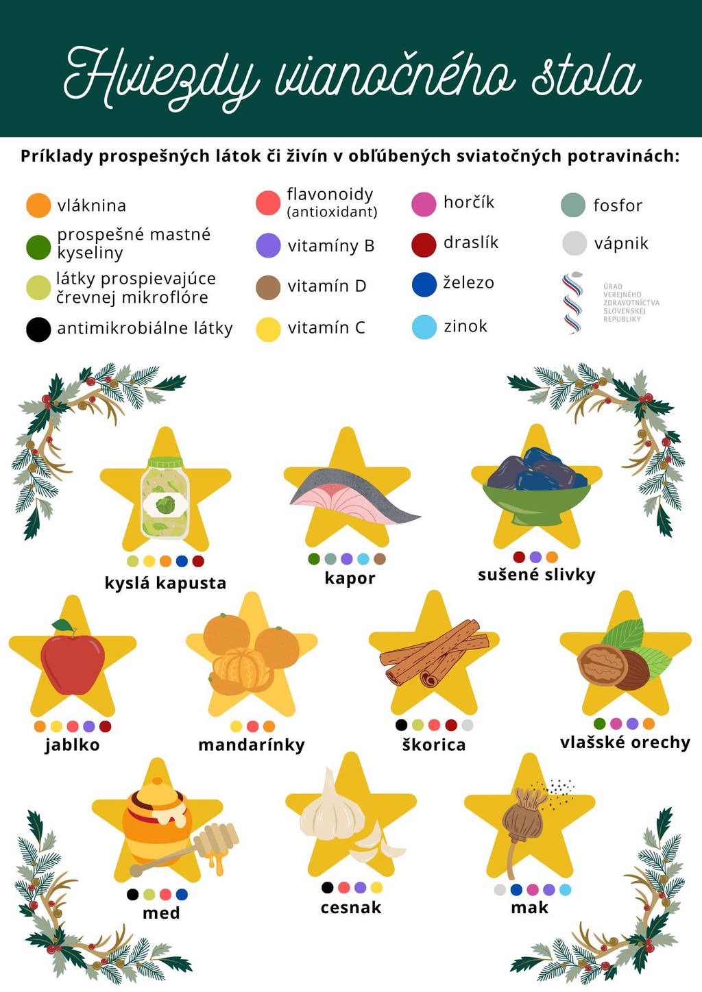 Je podľa nich dôležité vybrať si typické vianočné pokrmy, ktoré telu prospievajú. Ide napríklad o med, cesnak, jablká či kyslú kapustu. Z vianočných jedál odporúčajú tiež ryby, ktorých mäso je podľa nich nízkoenergetické a ich bielkoviny sú biologicky plnohodnotné.