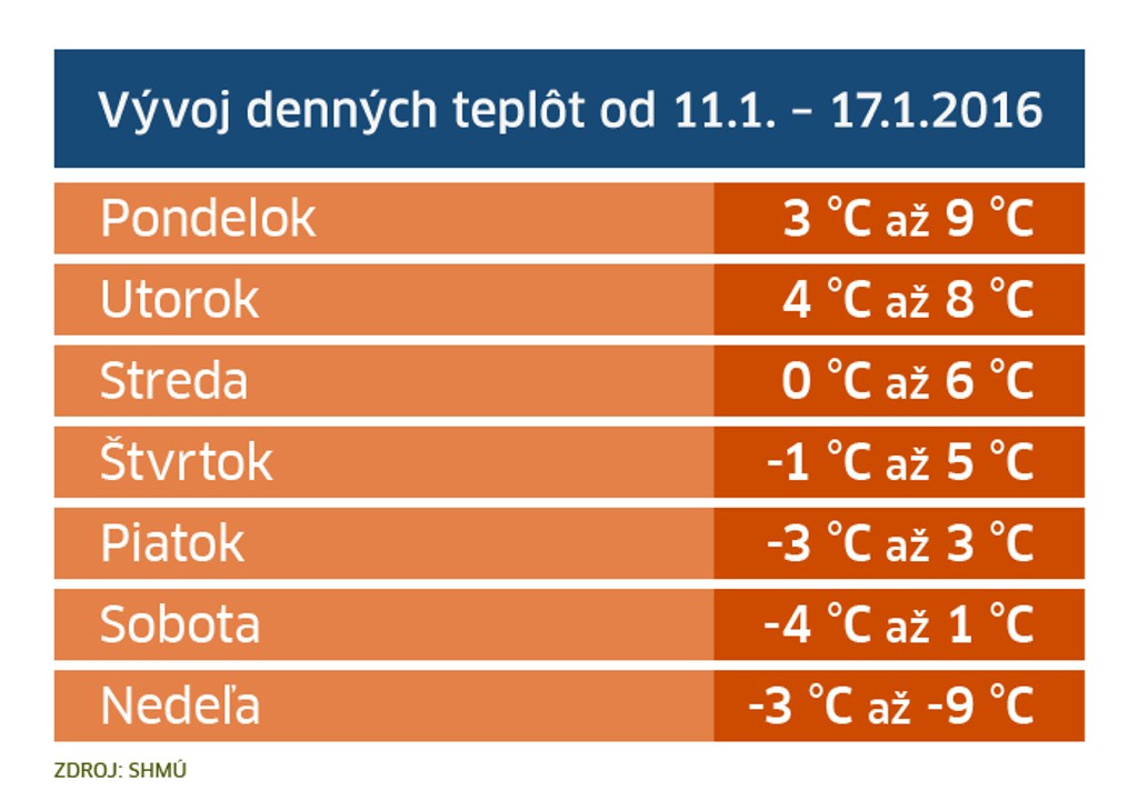 V sobotu bude z premenlivej oblačnosti miestami snežiť, častejšie na severe Slovenska. Postupne sa bude ochladzovať a v sobotu cez deň vystúpi teplota na -5 až nulu. A v nedeľu bude ešte chladnejšie. Poriadne prituhne aj v noci.