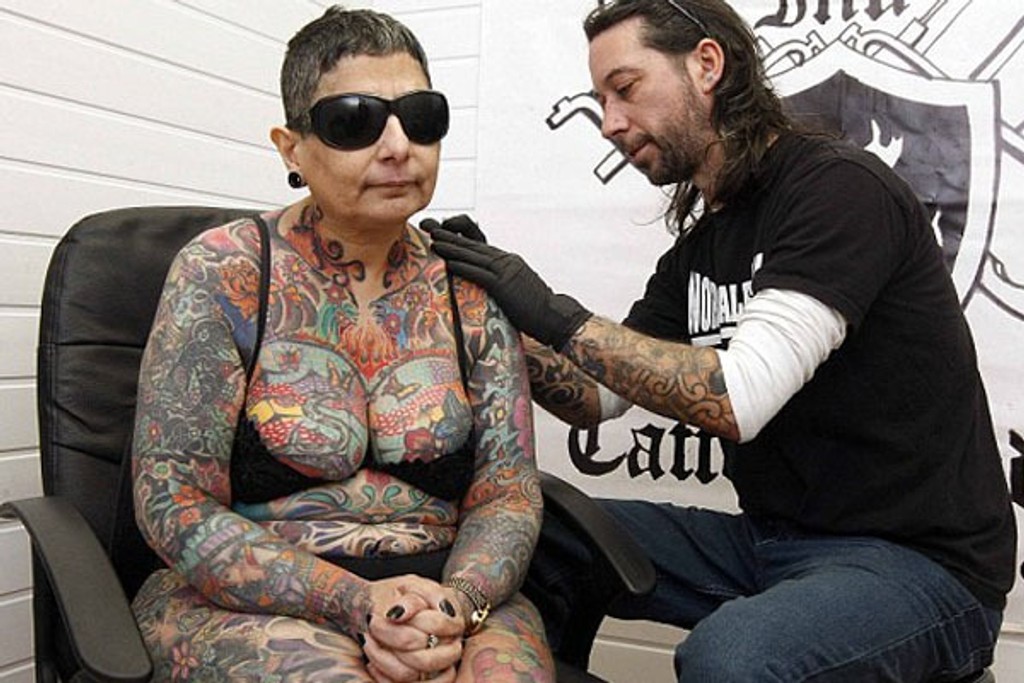 Ale Fran, ktorá je aj matkou, hovorí, že jej manžel Ron a tetovač Grez Bowman, sa správali ako jej oči. Popisujú jej podrobnosti o zložitých kresbách od krku až k členkom.