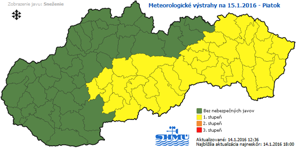 Výstraha pred snehom platí pre celý Košický kraj a pre okresy Bardejov, Humenné, Levoča, Medzilaborce, Prešov, Sabinov, Snina, Stropkov, Svidník a Vranov nad Topľou.