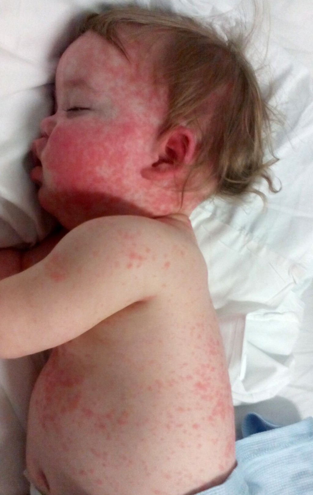 Len 15-mesačný Finley skončil v nemocnici pre smrtiacu alergickú reakciu na ibuprofén. Začali mu zlyhávať orgány, na koži sa mu vyhádzali pľuzgiere, ktoré následne sčernali. Rodičia s ním utekali do nemocnice potom, ako začal chlapček plytko dýchať a mal vysokú teplotu. Z úst sa mu rinula krv. Píše The Sun.