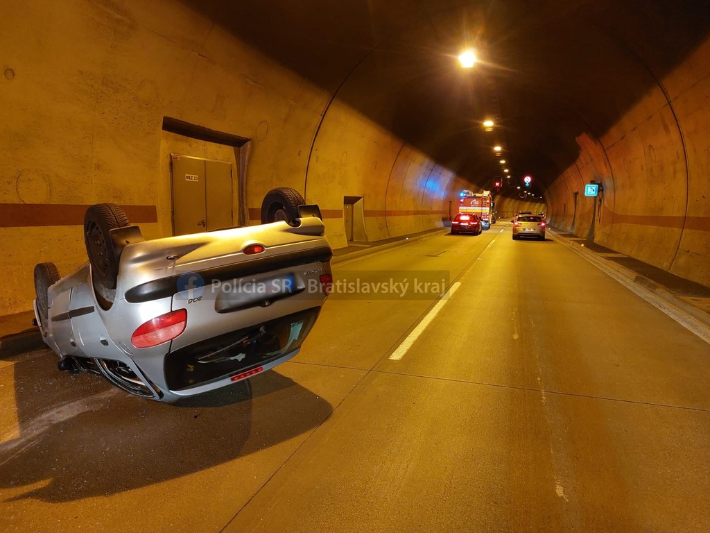 V Bratislave na diaľnici D2, konkrétne v tuneli Sitina smerom do Petržalky, havarovalo v piatok (6.1.) večer auto. Skončilo prevrátené na streche. Informujú o tom bratislavskí krajskí policajti na sociálnej sieti.