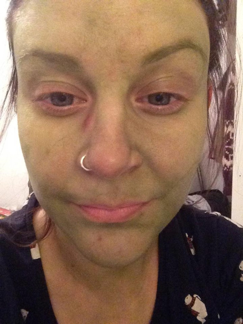 "Použila som ho prvýkrát a nechala som ho pôsobiť 45 minút. Bola som stále zelenšia a zelenšia. Odfotila som sa a poslala som fotku kamarátke, ktorá je dermatologička. Povedala mi, že k tomu mohlo dôjsť preto, lebo bol krém už otvorený a dostal sa doň vzduch," hovorí Kirsty.