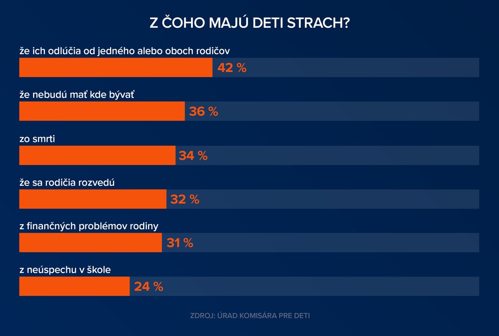 Viac ako tretina detí sa bojí, že sa ich rodičia rozvedú a že budú mať finančné problémy. Takmer štvrtina sa bojí neúspechu v škole.