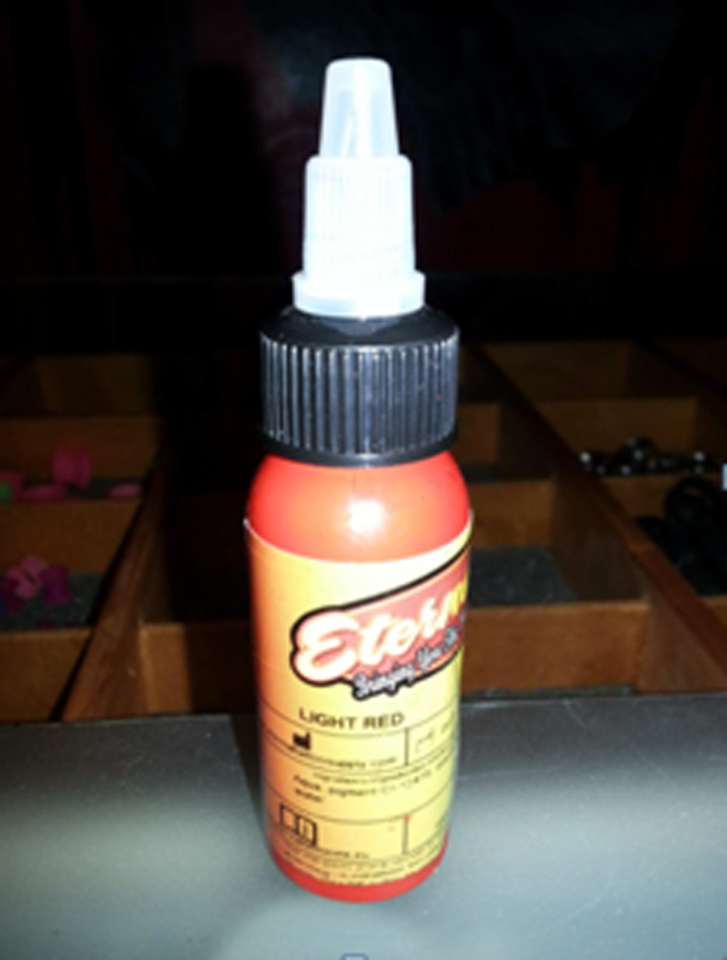 Nebezpečná je aj farba na tetovanie s názvom Light red, značky American Eternal Ink, pôvodom z USA. Výrobok sa nachádza v 30-ml fľaške a obsahuje aromatické amíny.