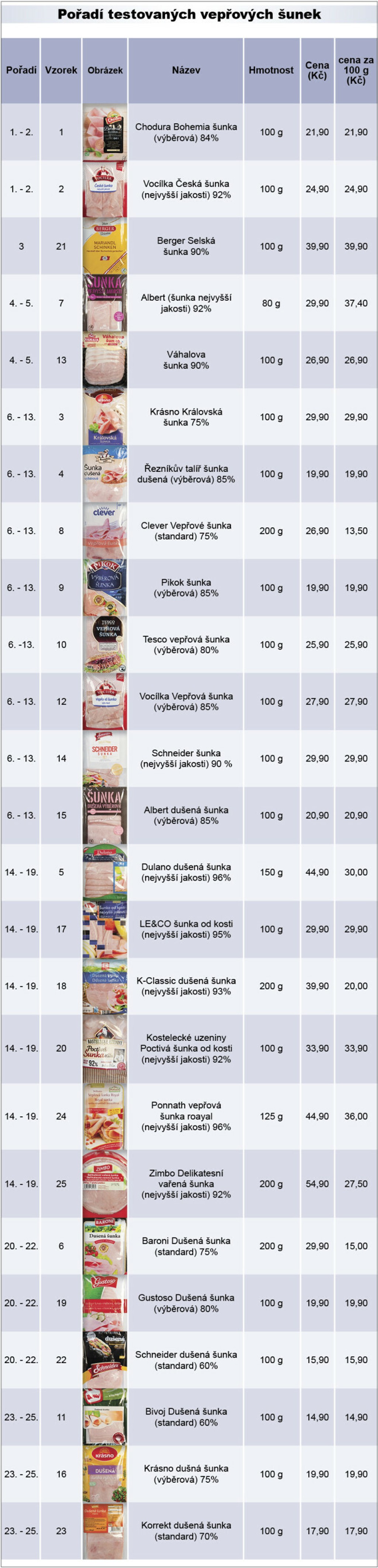 Hoci bolo vzoriek rovno dvadsaťpäť, žiadna v teste vyložene neprepadla. A to je dobrá správa pre nás všetkých. Samozrejme, dali by sa na trhu asi zohnať šunky, ktoré svojou kvalitou a obsahom mäsa, nevyhovujú, redakcia ale na také v regáloch supermarketov nenarazila. "Pred rokmi by sa nám o niečom takom mohlo iba tak zdať," prezradil nám Stupka.