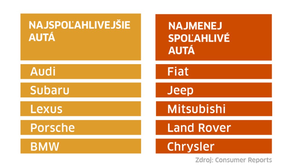 Do rebríčka sa nedostali značky Alfa Romeo, Jaguar, Maserati, Ram,