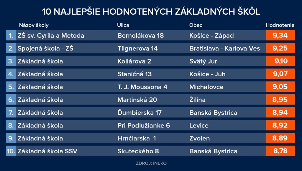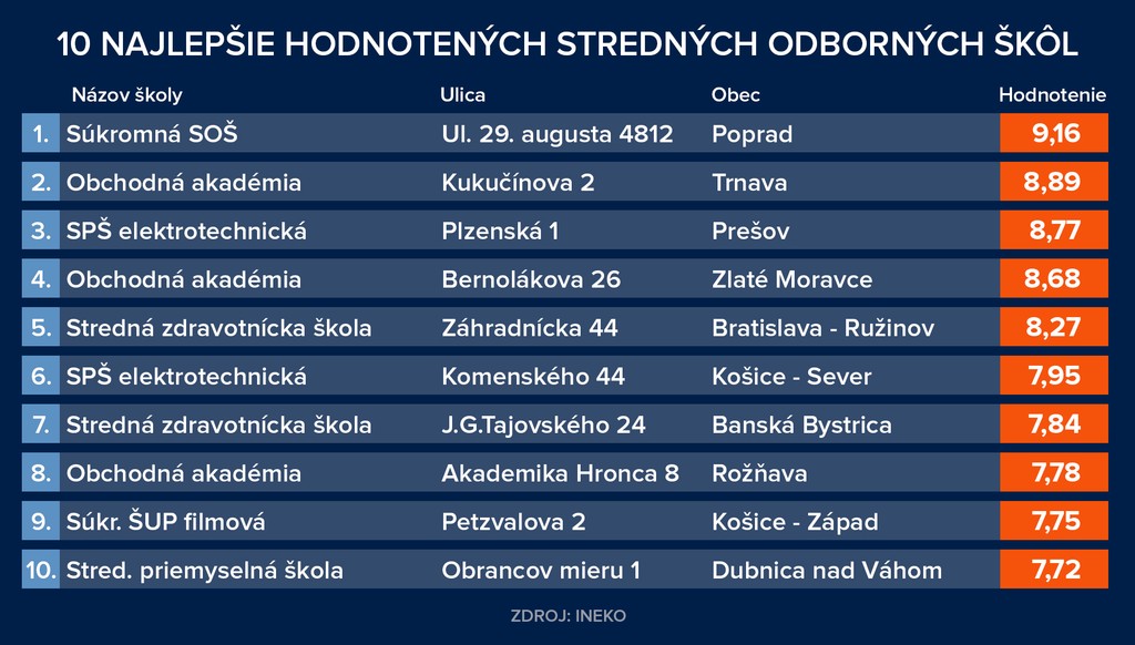 Rebríčky základných a stredných odborných škôl a gymnázií vypracoval INEKO.