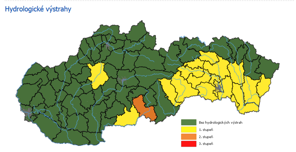 Hladiny riek sa z trvalého dažďa môže dvihnúť v okresoch Lučenec, Spišská Nová Ves, Gelnica. Tiež v Košickom okrese v okolí Hornádu a Bodvy, Levočskom, Sabinovskom, Prešovskom a Michalovskom okrese. Výstraha pred povodňami platí aj v okresoch Vranov nad Topľou, Sobrance a Trebišov.