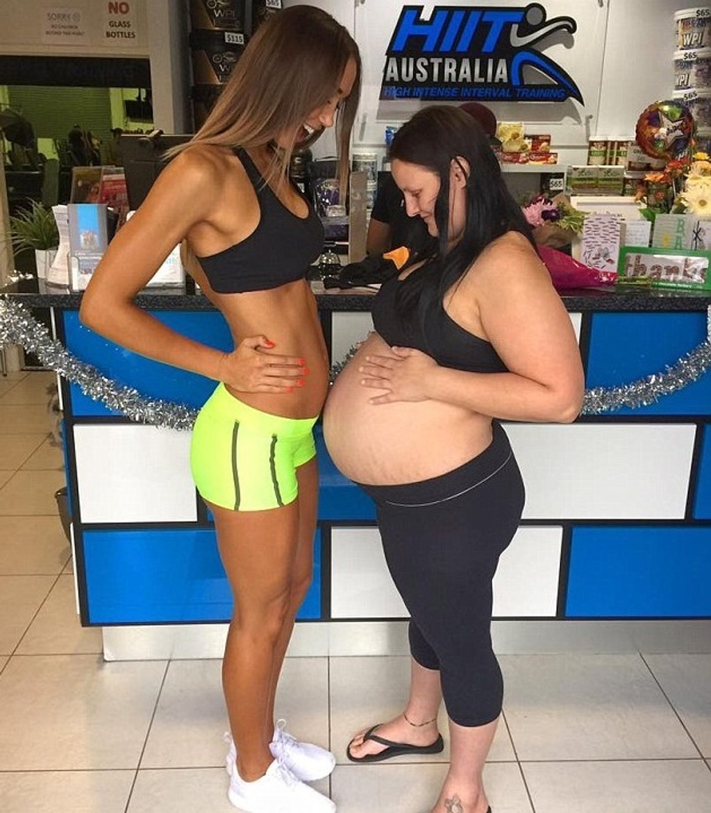Najviac pobúrila ľudí snímka s jej kamarátkou Nat. Na fotke sú obe ženy v radostnom očakávaní a delia ich len 4 týždni tehotenstva. Budúca mamička vpravo bola samozrejme bližšie k termínu pôrodu a 186 centimetrov vysoká fitnesska sa náchadzala v 21, 5 týždni tehotenstva.