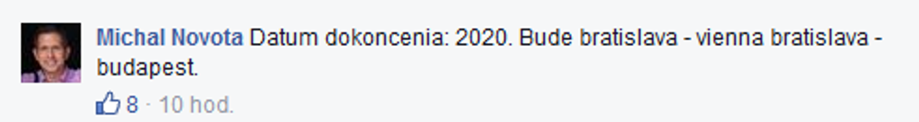 V komentári pod ďalším príspevkom aj určil presný dátum dokončenia. "Dátum dokončenia: 2020. Bude Bratislava-Viedeň-Bratislava-Budapešť."