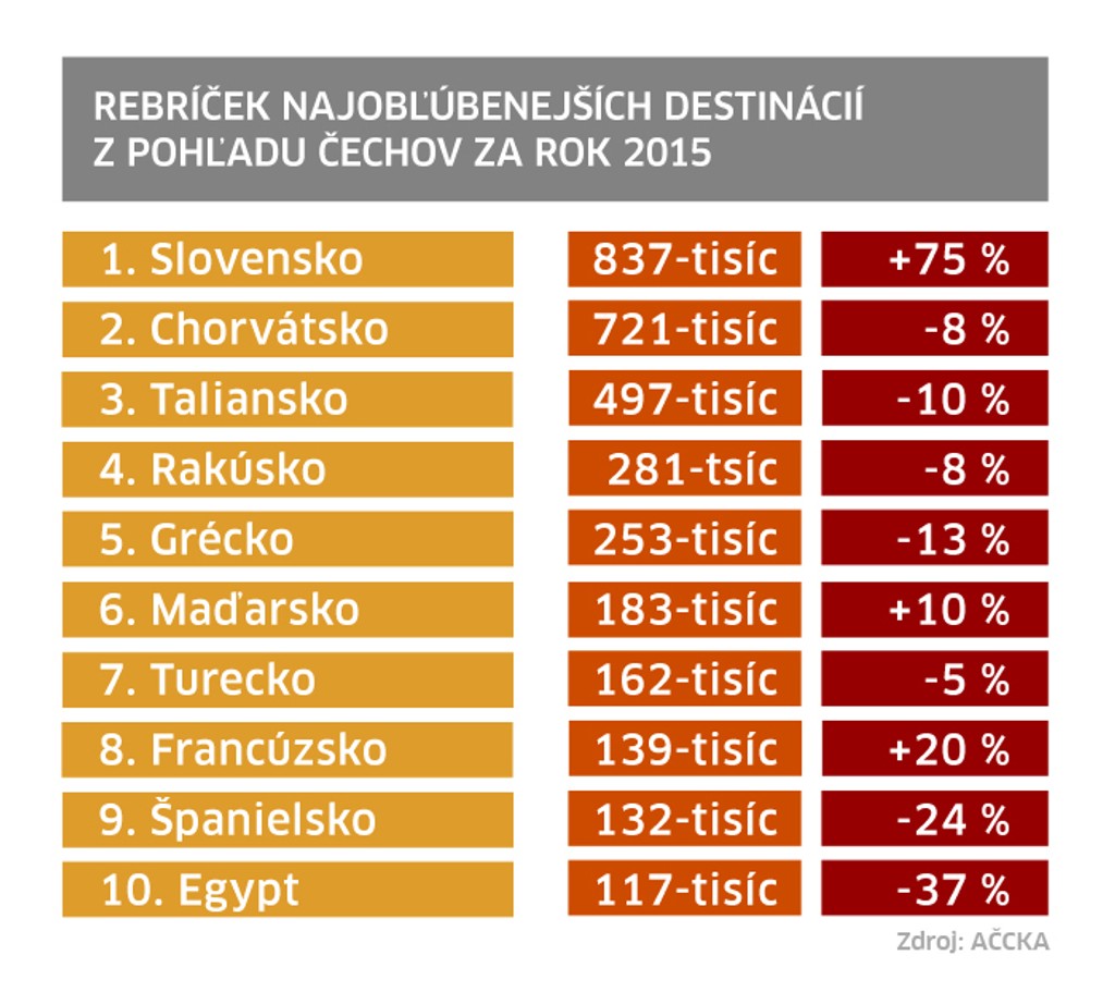 Z 487-tisíc turistov v roku 2014 počet turistov z Česka narástol až na 873-tisíc, čo Asociácia cestovných kancelárií hodnotí ako neuveriteľný nárast.