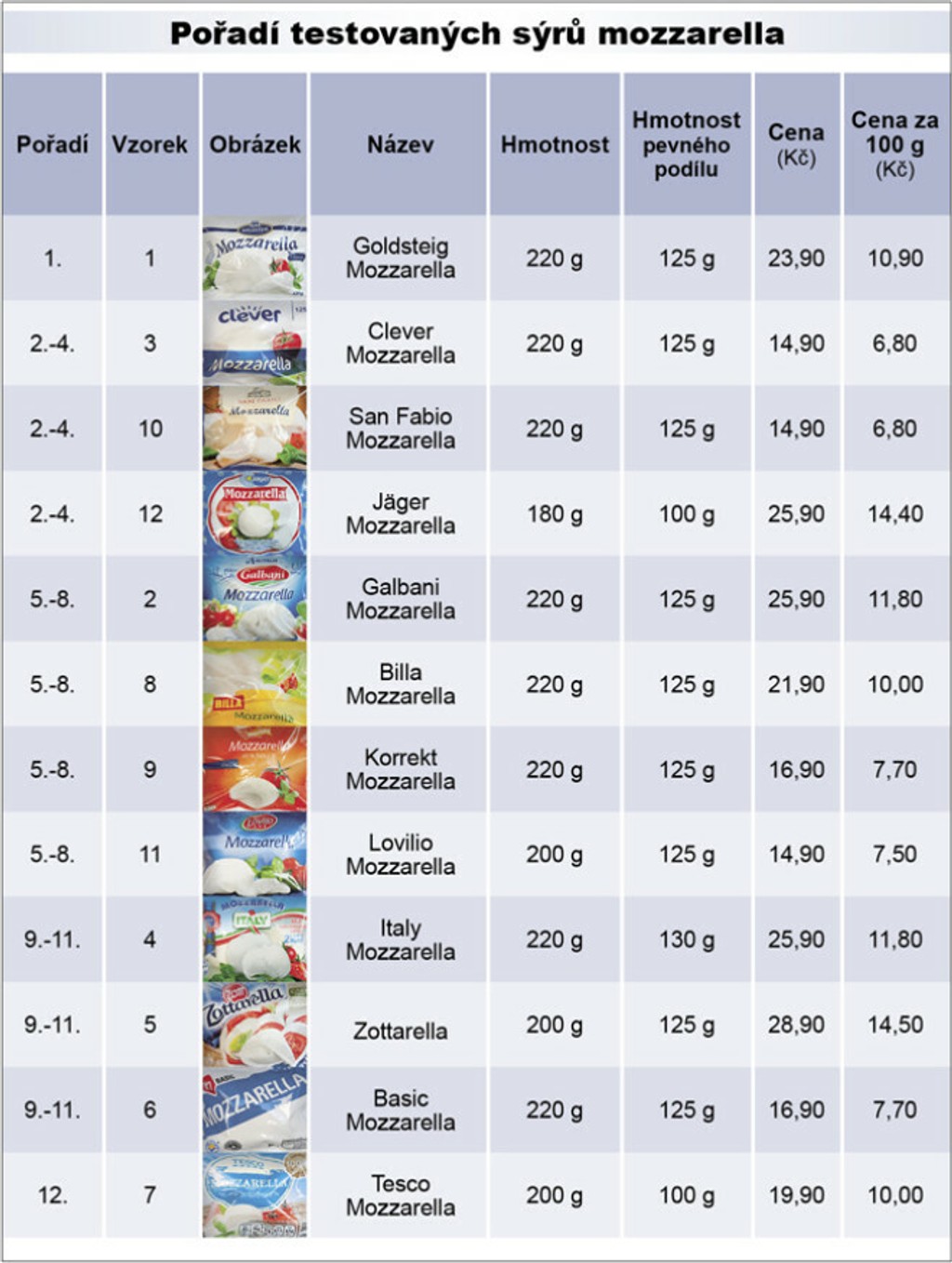 Na druhom až štvrtom mieste sa umiestnili mozzarelly podľa Stupkových predstáv. Teda tie mäkké, vláknité a šťavnaté. Ide o mozzarellu značky San Fabio, mozzarellu Clever a mozzarellu od značky Jäger. Úplným víťazom testu sa potom stala mozzarella, ktorá sa anonymne skrývala pod číslom 1, teda mozzarella od značky Goldsteig. "Má najsmotanovejšiu chuť a je v nej cítiť ešte trochu kyslého mlieka," chváli víťaza Petr Stupka.