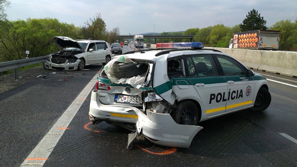 V tom sa na nich vyrútilo ďalšie auto. Jeho vodičku to po aquaplaningu začalo hádzať zo strany na stranu. Policajti stihli z cesty odskočiť v poslednej chvíli. Pri nehode ostalo poškodených až päť áut. Pri nehode sa zranila vodička, ktorá narazila práve do policajného auta. Ošetrili ju v prešovskej nemocnici.