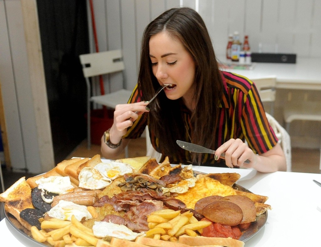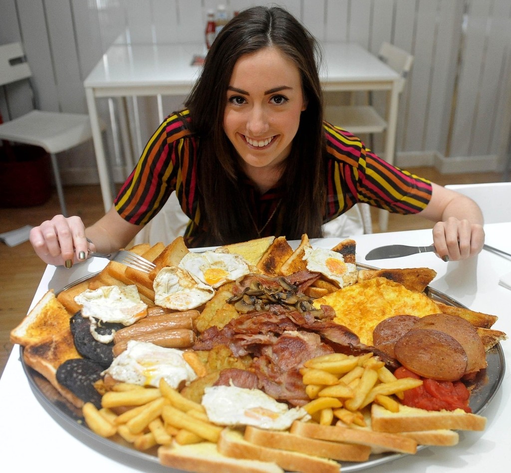 Čo mladú Britku Gabriellu Lewis k tomuto činu viedlo, nie je jasné. Možno sa len chcela zmedializovať, čo sa jej vlastne aj podarilo. V reštaurácii si objednala takzvané „raňajky šampiónov", ktoré obsahujú 12 plátkov slaniny, 12 párkov, 14 vajec, pol bochníka chleba, čiernu huspeninu, huby, fazuľu, paradajky, čipsy a hrnček čaju.