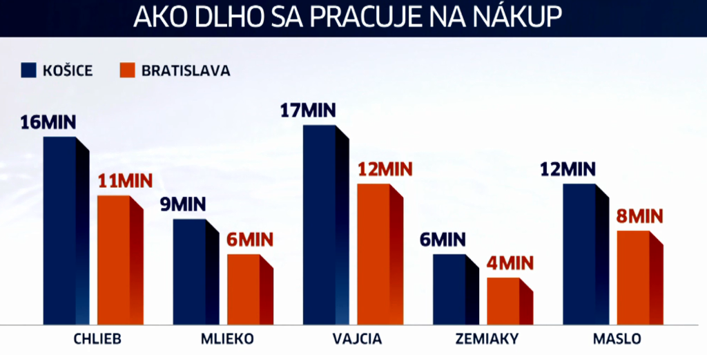 Aby sme si do nákupných košíkov mohli vložiť základné potraviny - chlieb, maslo, múku či vajcia a iné potraviny bežnej spotreby za 20 eur, v priemere sme museli odpracovať takmer pol dňa.