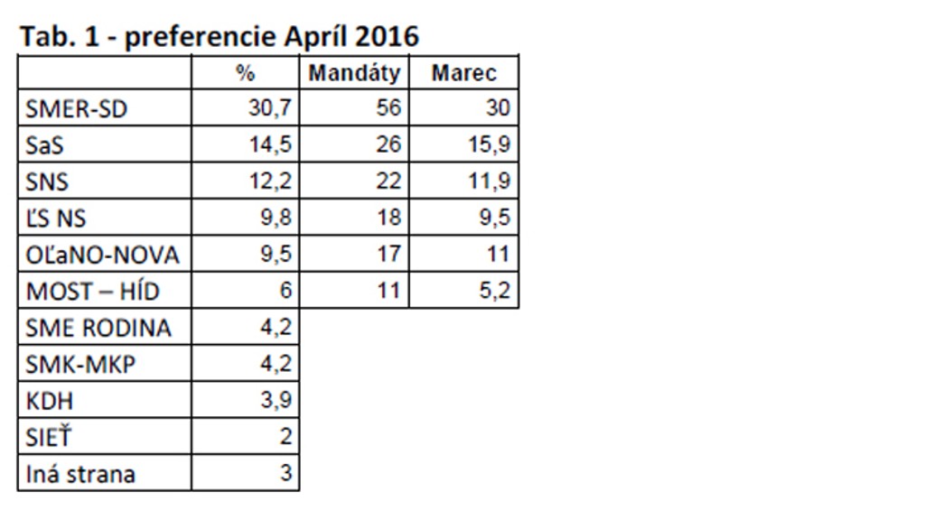 Ak by sa voľby konali tento víkend, ľudia by opäť najviac hlasov dali strane Smer-SD, ktorý by získal o poslanca viac ako má teraz - 50. Hlas by mu odovzdalo 30,7 percenta ľudí.