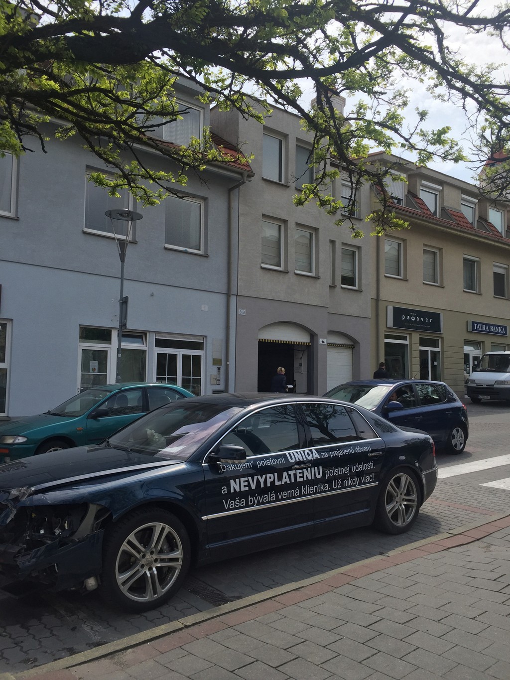 Mimochodom, nejde o prvú takúto pomstu nespokojného klienta, v apríli minulého roka bolo auto s odkazom odparkované pred poisťovńou Kooperatíva.