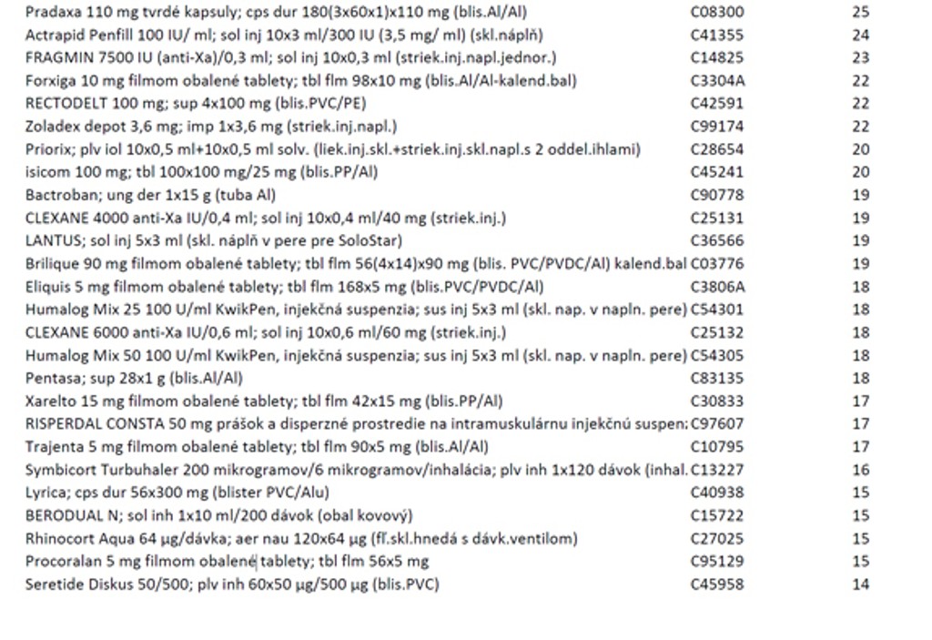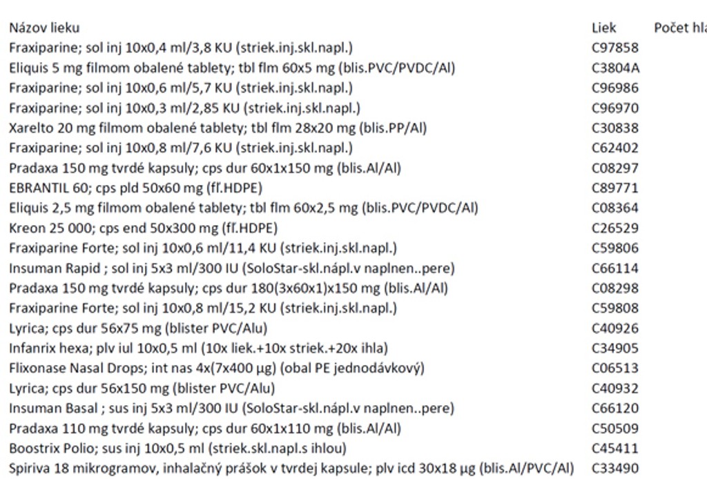 Popredné priečky zapĺňajú lieky proti zrážaniu krvi, na vysoký tlak či inzulíny.
