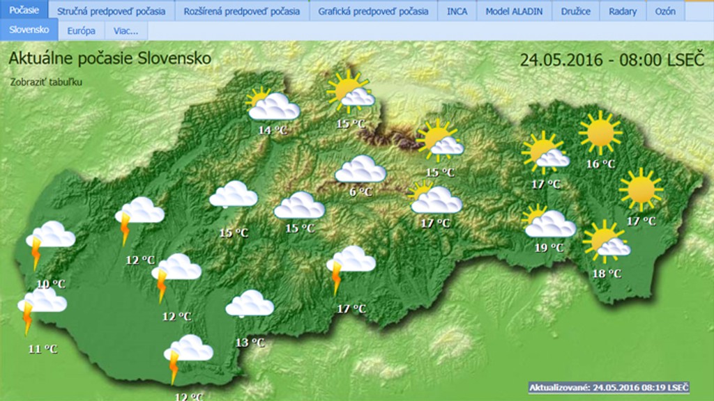 "S búrkami môžu byť spojené krátkodobé ale intenzívne lejaky, pri ktorých môžu úhrny dosiahnuť 20 až 40 milimetrov a nárazy vetra rýchlosť 18 až 23 metrov za sekundu (60 až 85 km/h)," informuje na svojom webe Slovenský hydrometeorologický ústav (SHMÚ).