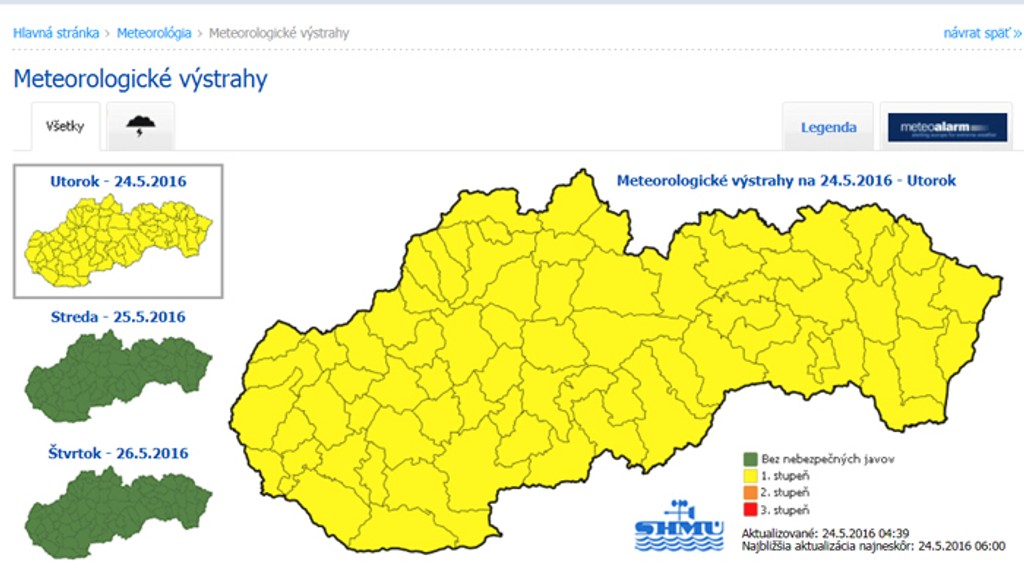 Meteorológovia upozorňujú, že búrky môžu spôsobiť prechodný výrazný vzostup vodných hladín na malých tokoch aj výskyt povodňových úkazov mimo tokov - zatápanie pivníc či podjazdov.