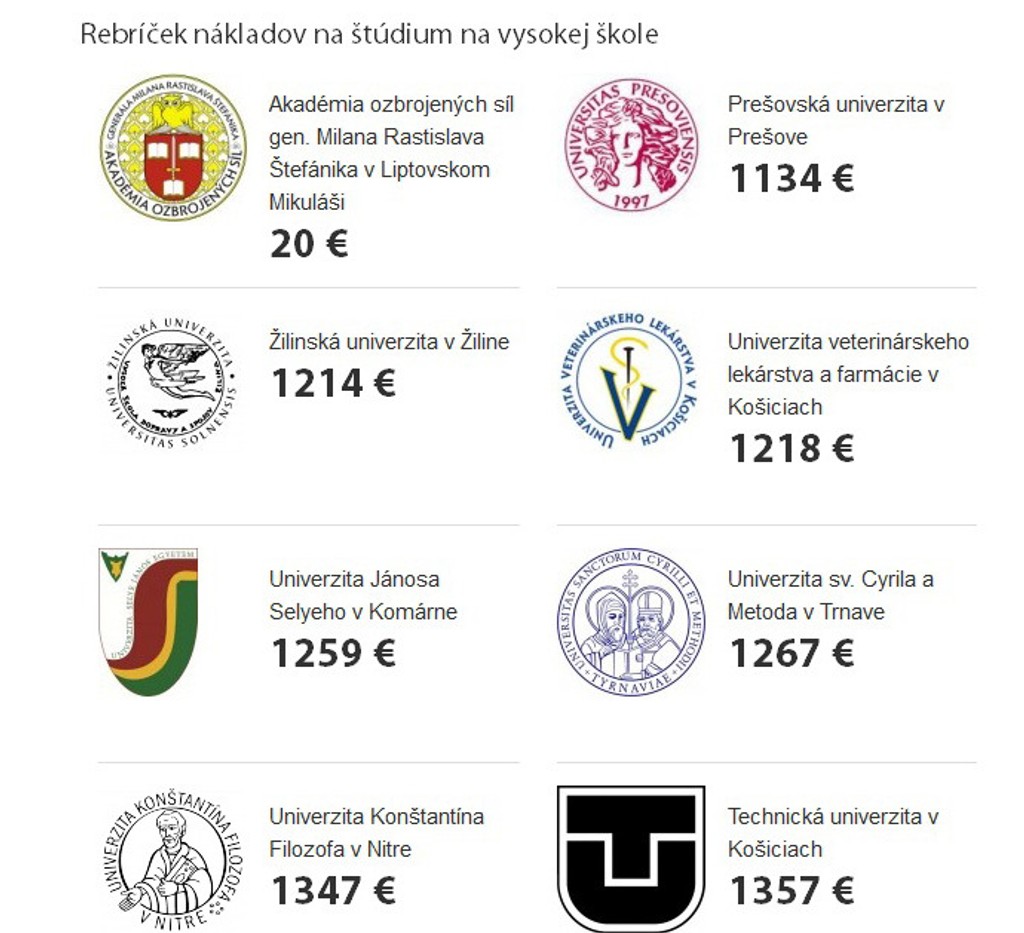 študenta stojí 1 134 eur, nasleduje Žilinská univerzita v Žiline, ktorá