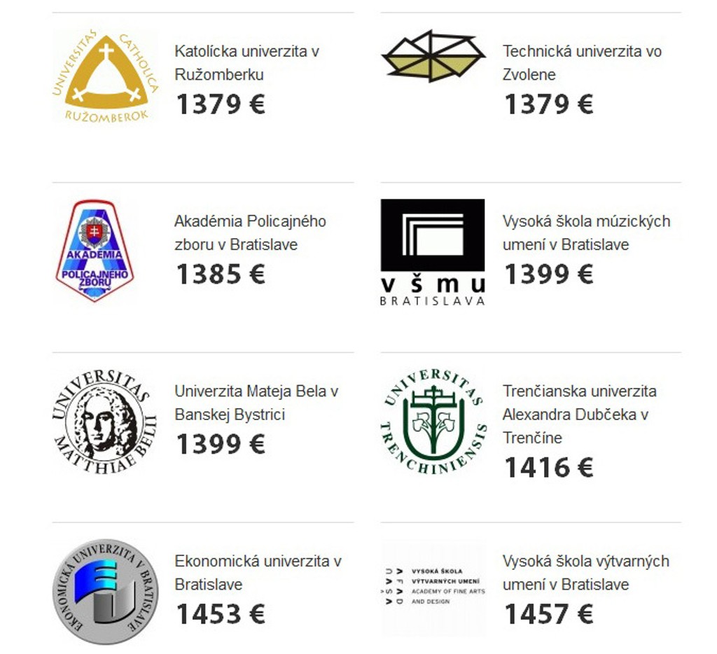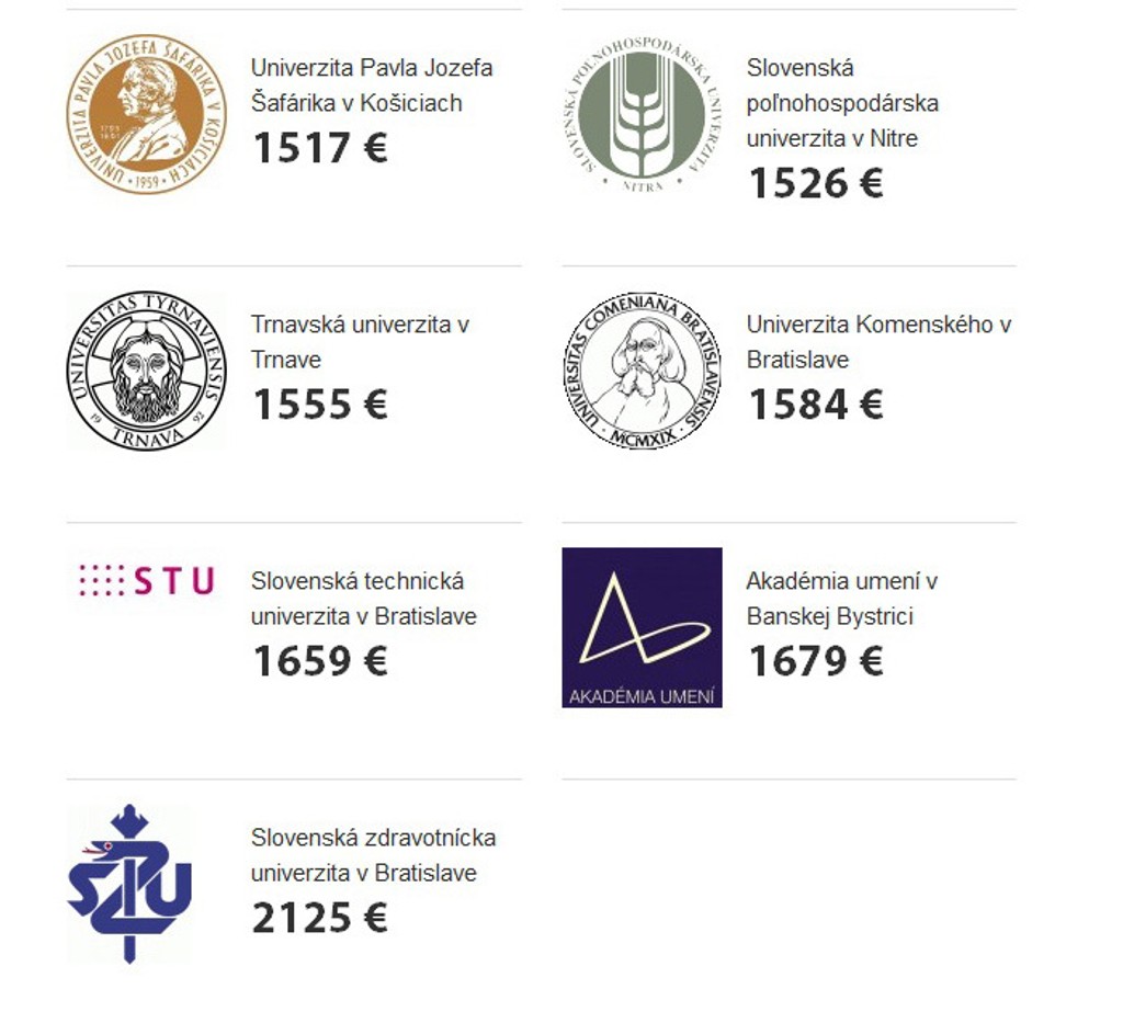 univerzite v Bratislave, za ktoré vysokoškolák zaplatí ročne 1 659 eur.