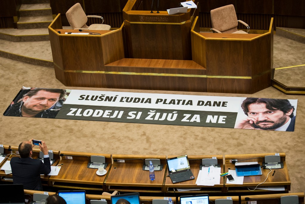 Rokovanie o odvolávaní Kaliňáka zablokoval transparent, Matovič ho prinesie opäť