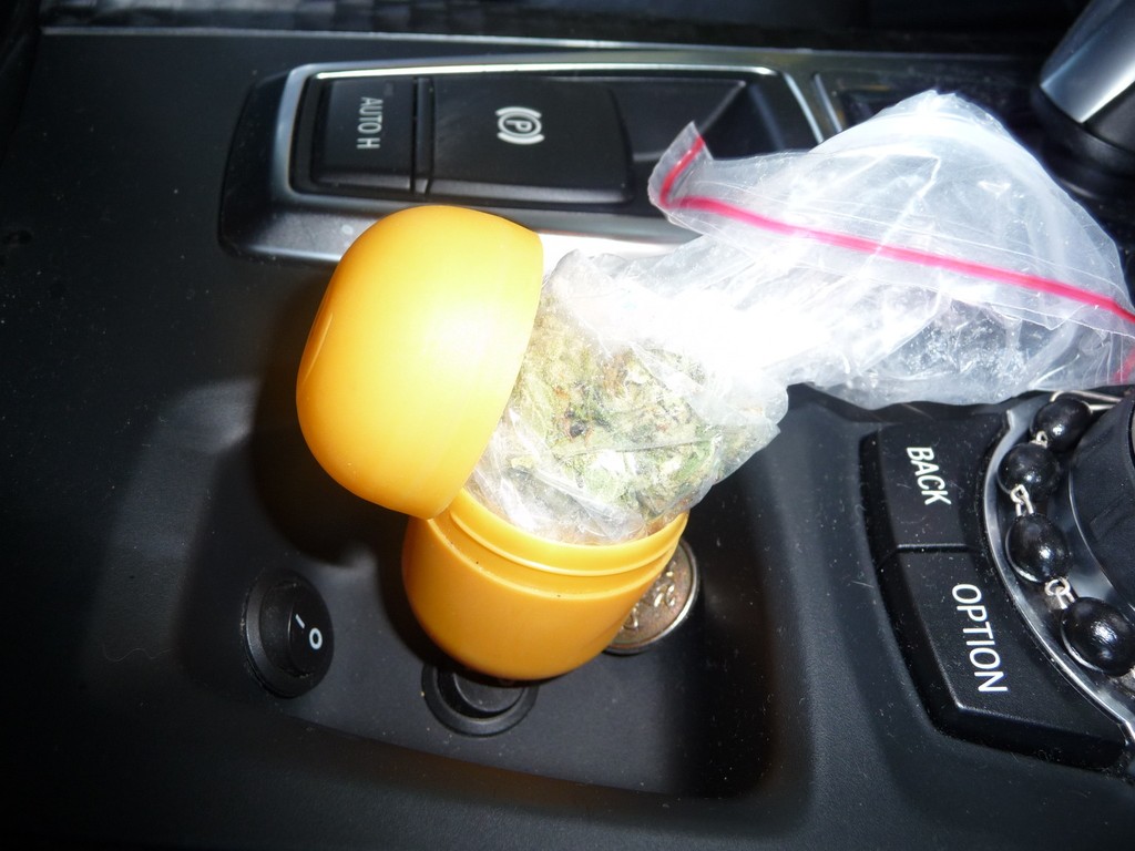 Priznal, že je v ňom zelená sušená rastlina. Za účelom zistenia, či ide o omamnú a psychotropnú látku, colníci nasadili služobného psa, ktorý podozrenie colníkov potvrdil. Ako informovala Iveta Zlochová, hovorkyňa Colného úradu Trnava, služobný pes vo vozidle označil práve stredovú lakťovú opierku, kde sa nachádzal vyššie uvedený žltý plastový obal, v ktorom bola ukrytá zelená sušená rastlina.