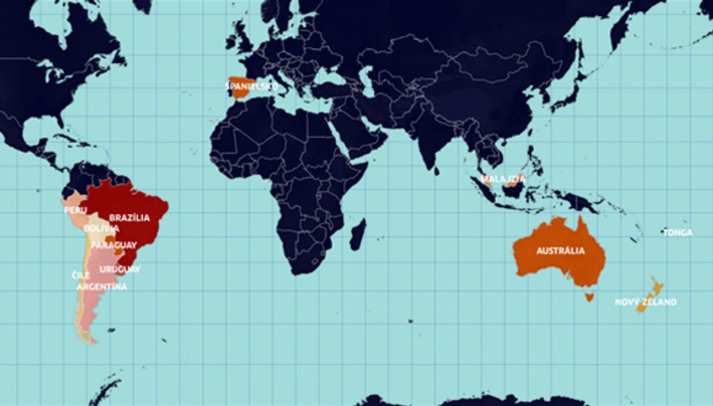 Trasa cesty: Španielsko, Brazília, Uruguaj, Argentína, Paraguaj, Bolívia, Peru, Chile, Nový Zéland, Tonga, Austrália, Malajzia