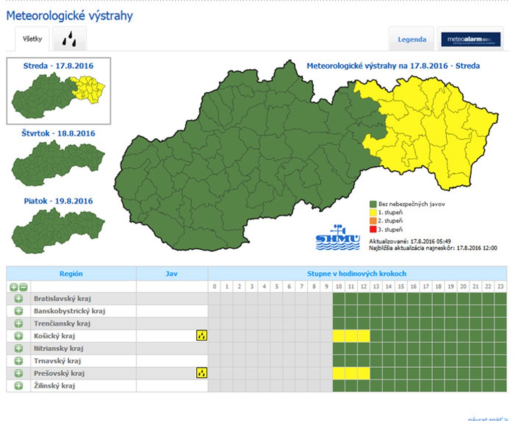Dnes bude prevažne polooblačno, miestami prehánky alebo búrky. Na Západe je na niektorých miestach už po daždi, dážď sa presúva na východ. Slovenský hydrometeorologický ústav vydal výstrahu najnižšieho stupňa pred silnými búrkami.