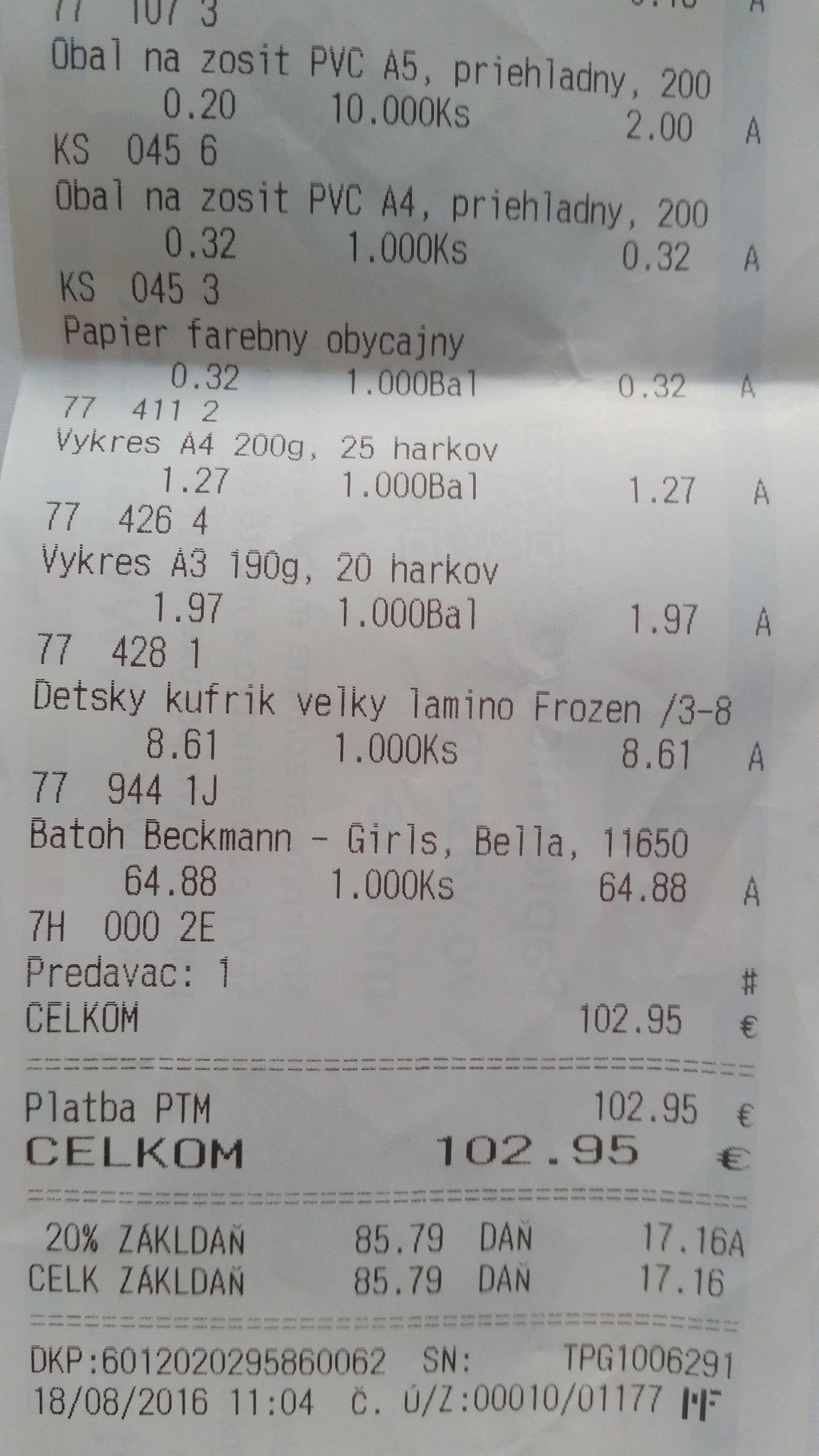 Nákup pomôcok nás vyšiel na 102,95 eur.