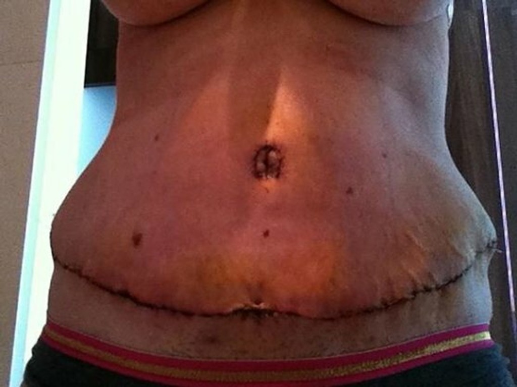 Britka absolvovala operáciu v máji minulého roka. Keď sa prebudila z narkózy, myslela si, že je všetko v poriadku. Akonáhle jej zložili obväzy, ostala zhrozená. Kožu mala extrémne vytiahnutú dohora a na bruchu mala obrovskú jazvu. Aj strie zostali.