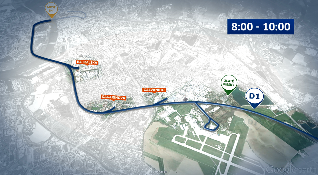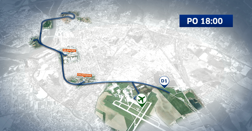 Uzávierka trasy Hrad - Palisády - Hodžovo nám. - Staromestská - Einsteinova - diaľničný obchvat - Ivanská cesta - Letisko.