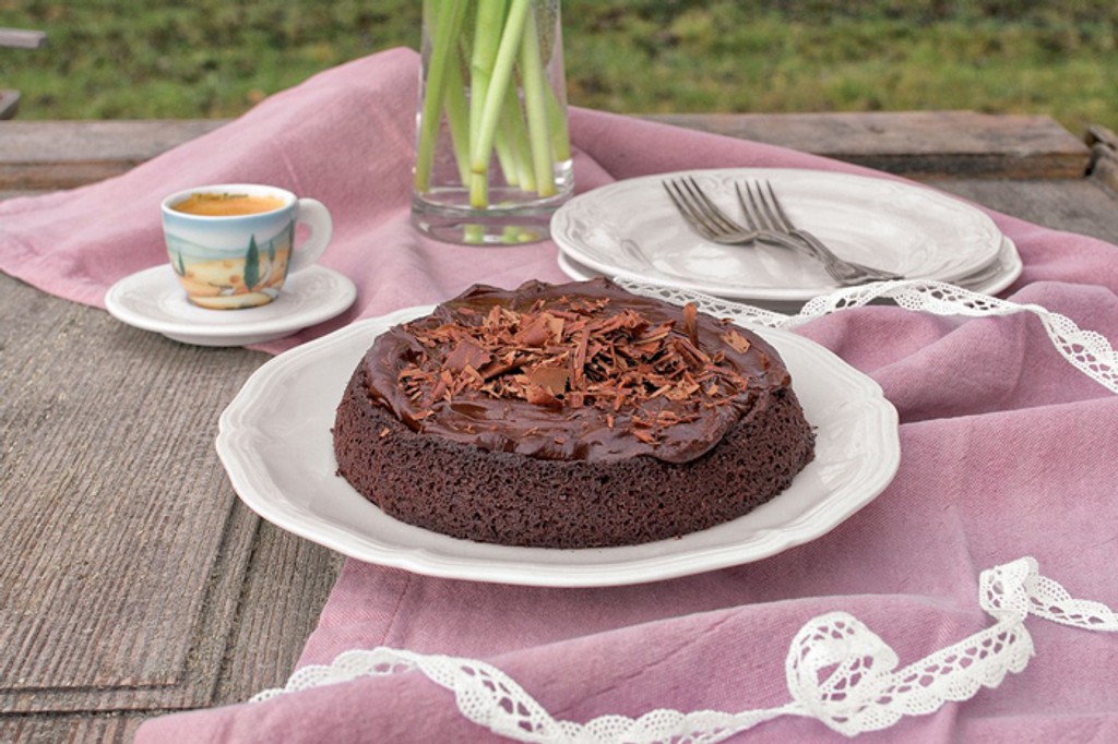 Polevu necháme vychladnúť a odstáť, kým nestuhne a potom ju natrieme na vychladnutý korpus. Posypeme čokoládovými hoblinami, skvele sa k tejto kombinácii hodí aj banán či maliny, môžeme nimi tortu ozdobiť.