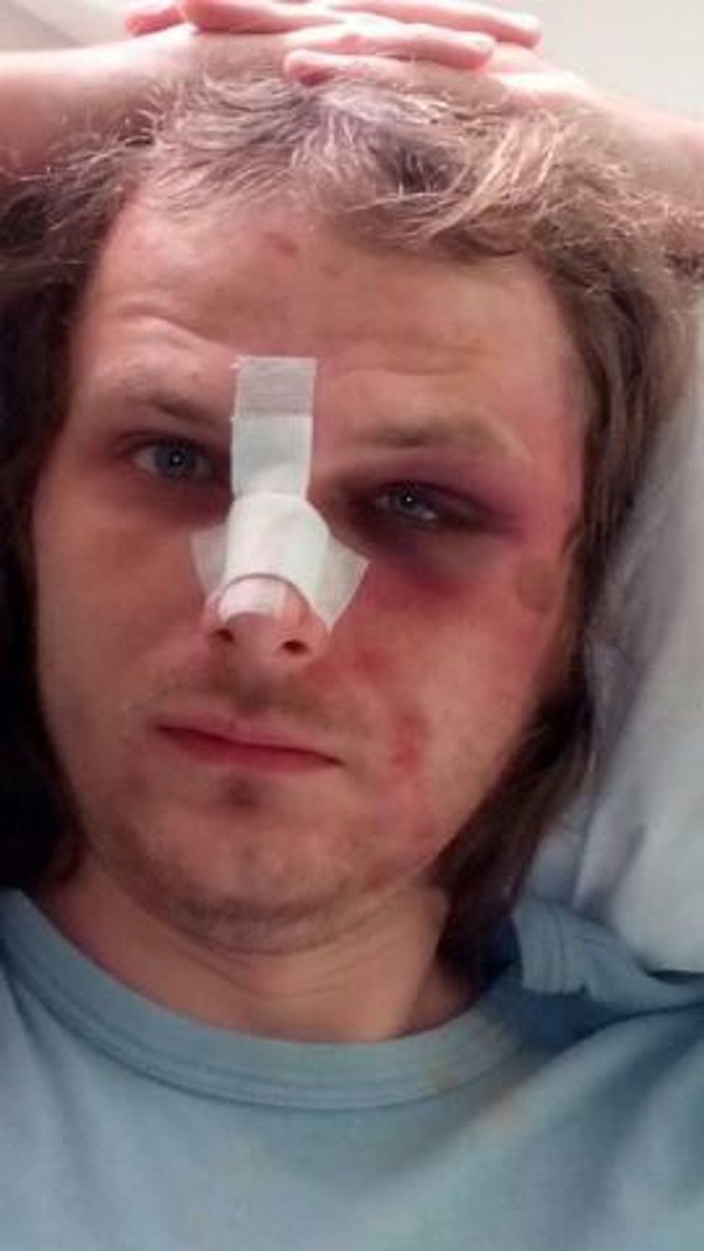„Doslova oni vyleteli hore tými schodmi, ho schmatli a takoj na zem ho šmarili, že žiadna výzva tam píšu, žiadne nič," oponuje mama poškodeného.