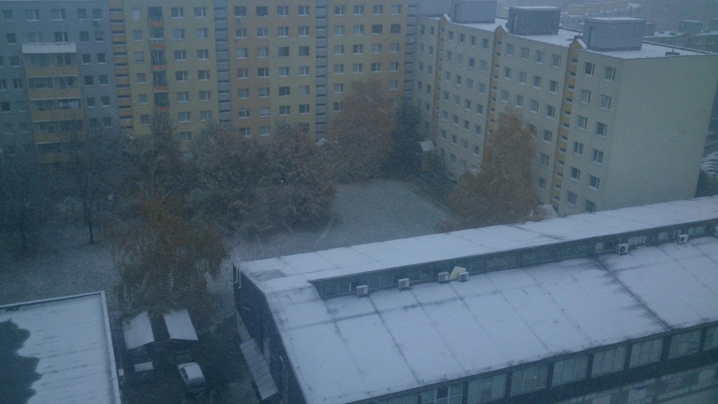 Sneh v okolí internátu Mladá Garda v Bratislave.