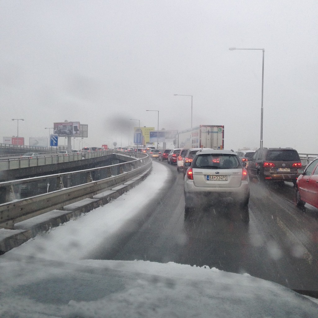 Počasie zaskočilo vodičov. Kolóny sa tvorili zo Senca v smere do Bratislavy či na Prístavnom moste a moste Lafranconi, kde sa autá posúvali "krokom". Dôvodom bolo, že išli opatrnejšie ako zvyčajne. Horšie to mali vodiči v smere zo Záhoria. D2 sa pre uzavretie tunelu Sitina upchala, a podobne tak obchádzkové trasy.