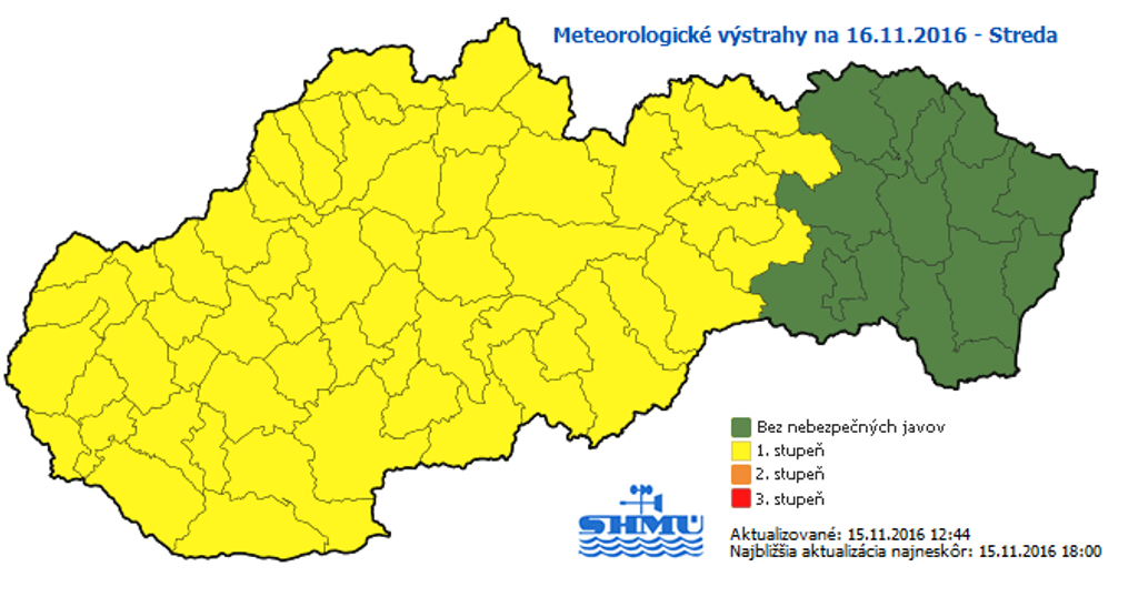 Teplý front prinesie od západu už v noci zrážky, ktoré budú spočiatku snehové, ale nad ránom sa vplyvom oteplenia začnú meniť na dažďové. Takže na mnohých miestach rátajte s tvorbou poľadovice.