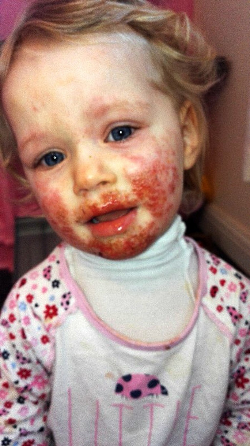 Lekári boli spočiatku bezradní. Mysleli si, že ide o ekzém. Rodina skúšala rôzne krémy, diéty. Testy ale ukázali, že dievčatko žiadnu alergiu nemá. Matke tak napadlo, či by to nemohol byť herpes od príbuzného, ktorý jej dcérku pobozkal na oslave narodenín. Trvalo ale osem mesiacov, kým dostalo dievčatko správne lieky a dnes má už peknú tváričku.