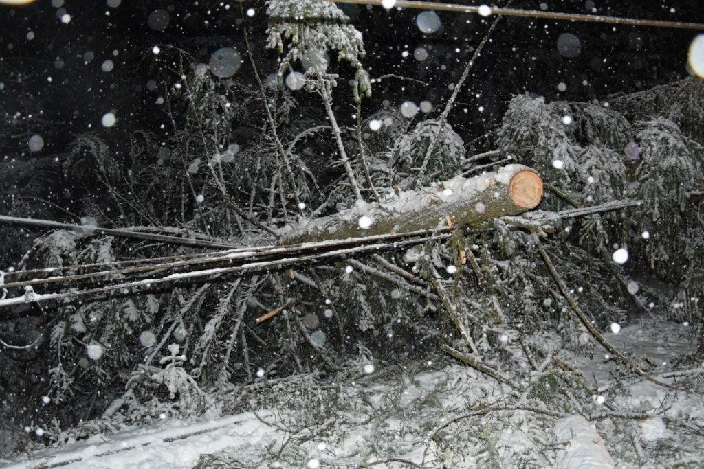 Ťažký mokrý sneh a silný vietor. Okolo 01.30 h im neodolali viaceré smreky pri trati v ťažko dostupnom teréne neďaleko Kráľovej Lehoty. Podľa slov krajské riaditeľky hasičov Evy Krajčiovej pod váhou ťažkého snehu spadli stromy na trakčné vedenie a pretrhli troleje.