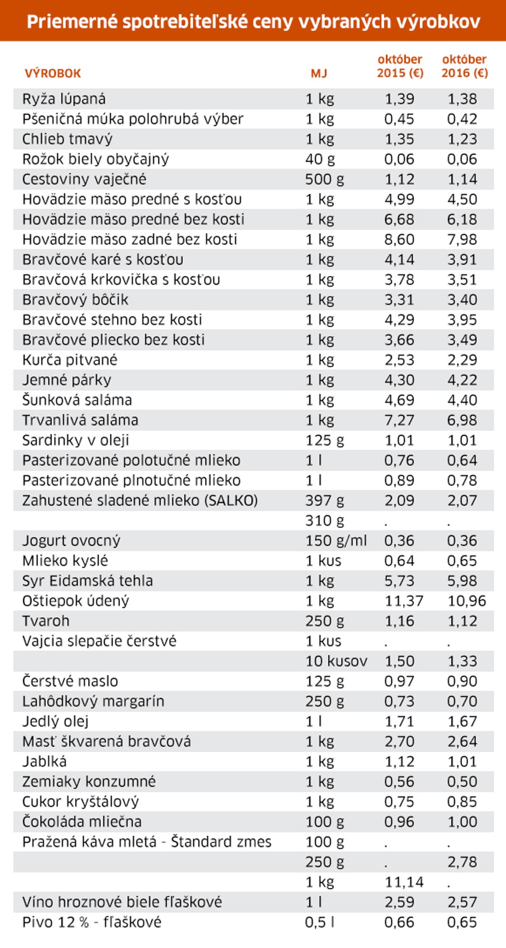 Ceny potravín kolíšu na pultoch predajní počas celého roka. Niektoré potraviny zdraželi, iné zlacneli. „Zo základných potravín nás drvivá väčšina vyjde pred tohtoročnými sviatkami lacnejšie ako vlani," konštatuje Jana Glasová, analytička Poštovej banky.