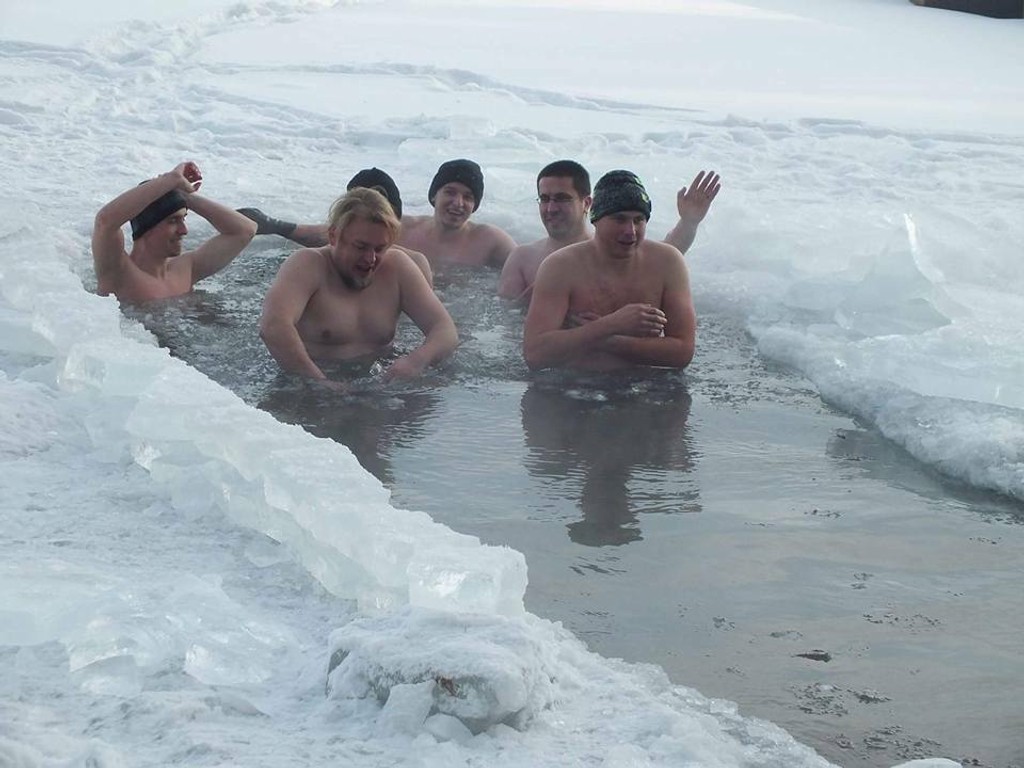 Po chvíli jazdy autom sme dorazili k Oravskej priehrade. Chlapci tam už čulo makali, pílili a sekali ľad, aby si v ľade spravili priestor (ľadovú vaňu). Ešte mi to nedochádzalo, bol som dobre oblečený a bol krásny deň.