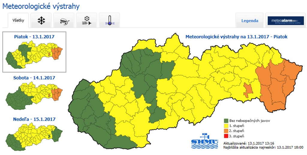 SHMÚ vydal niekoľko výstrah.