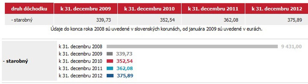 Preto v roku 2012 dostávalo takmer 3000 dôchodcov len 76 eur mesačne, zatiaľ čo viac než 9000 vyše 784 eur (v tom roku to bola výška priemernej mzdy).