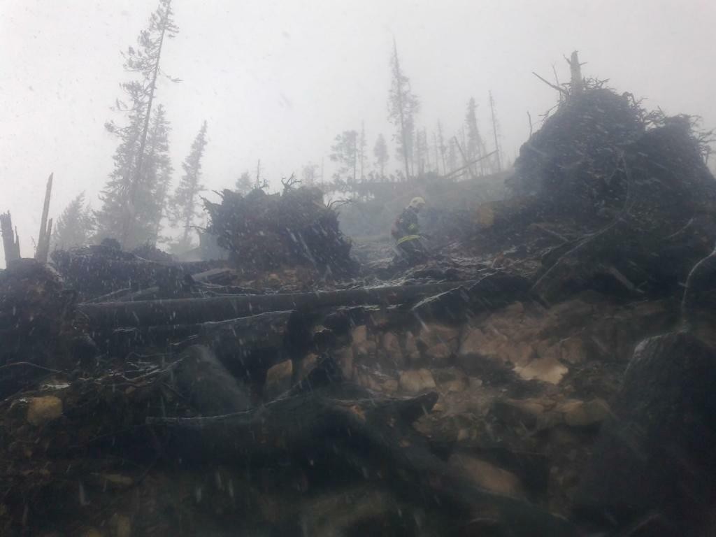 Keďže na mieste fúkal prudký vietor (cca 20m/s), vrtuľník sa musel vrátiť a s požiarom bojovali ďalej už iba hasiči a dobrovoľníci z okolia. Oheň sa presúval ďalej do lesa a zachytil okrajové stromy.