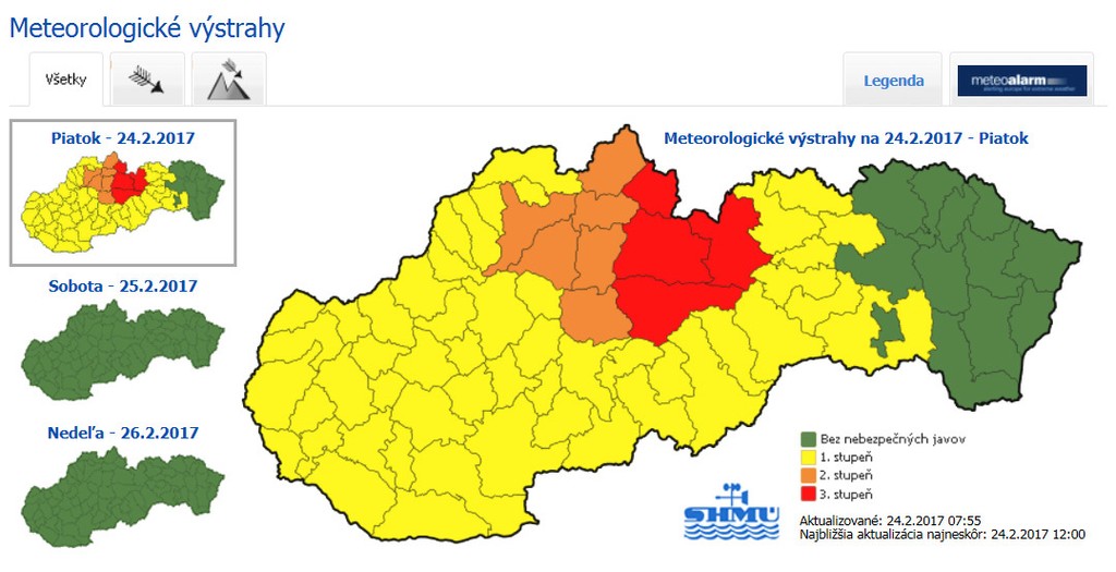 SHMÚ vydal výstrahu 3. stupňa. Prečítajte si, v ktorých okresoch to bude najhoršie.