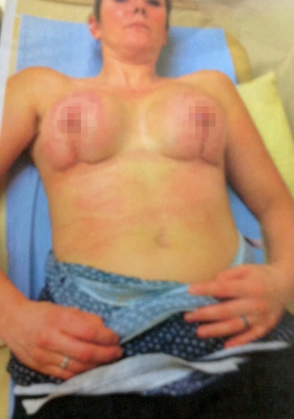 Krátko po štvrtej operácii chirurg zistil, že sa aj najnovšie implantáty uvoľnili a musel jej ich vybrať. Takže zostala úplne bez implantátov a so strašnými a bolestivými jazvami na prsiach.